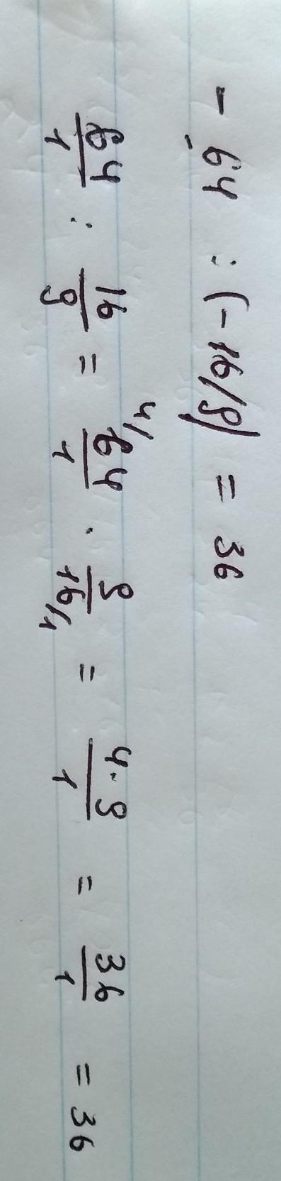 64 и число 16 сокращаются по 16, затем 9•4(результат 64:16)=36. - на - равняется +.