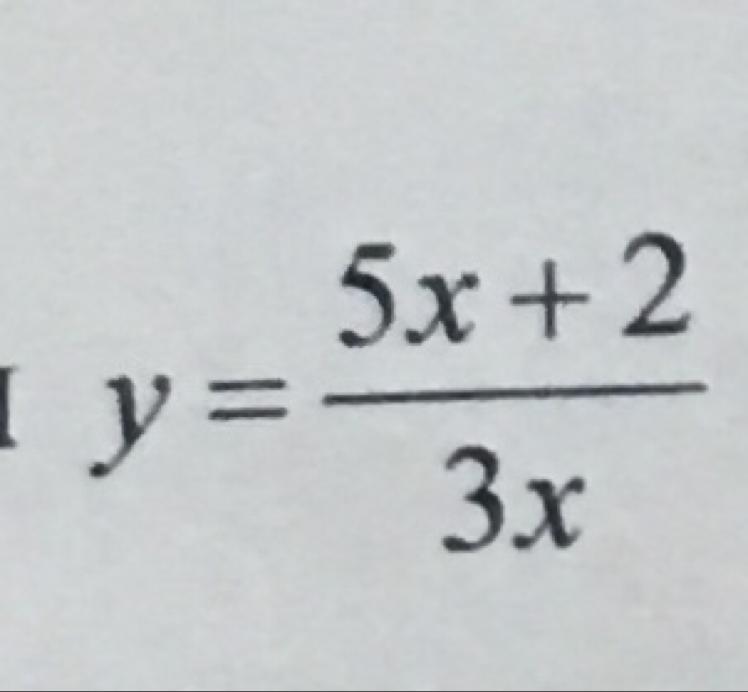 Умножая обе части на 3*x, получаем выражение 3*x*y=5*x+2. Перенося 5*x в левую часть, получаем выражение 3*x*y-5*x=x*(3*y-5)=2. Отсюда x(y)=2/(3*y-5).