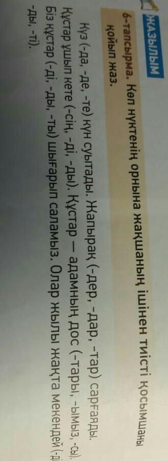 здравствуйте, помогите пожалуйста написать правильно упражнение по казахскому языку
