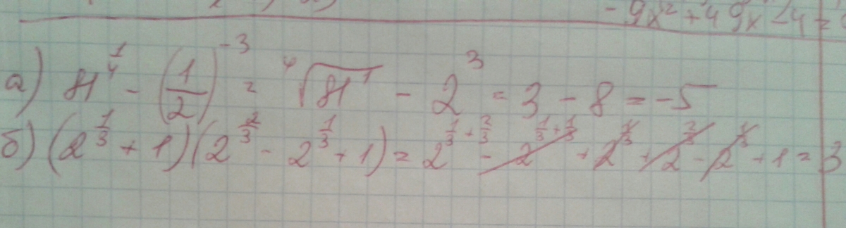 а) 81^(1/4) - (1/2)^-3 ;