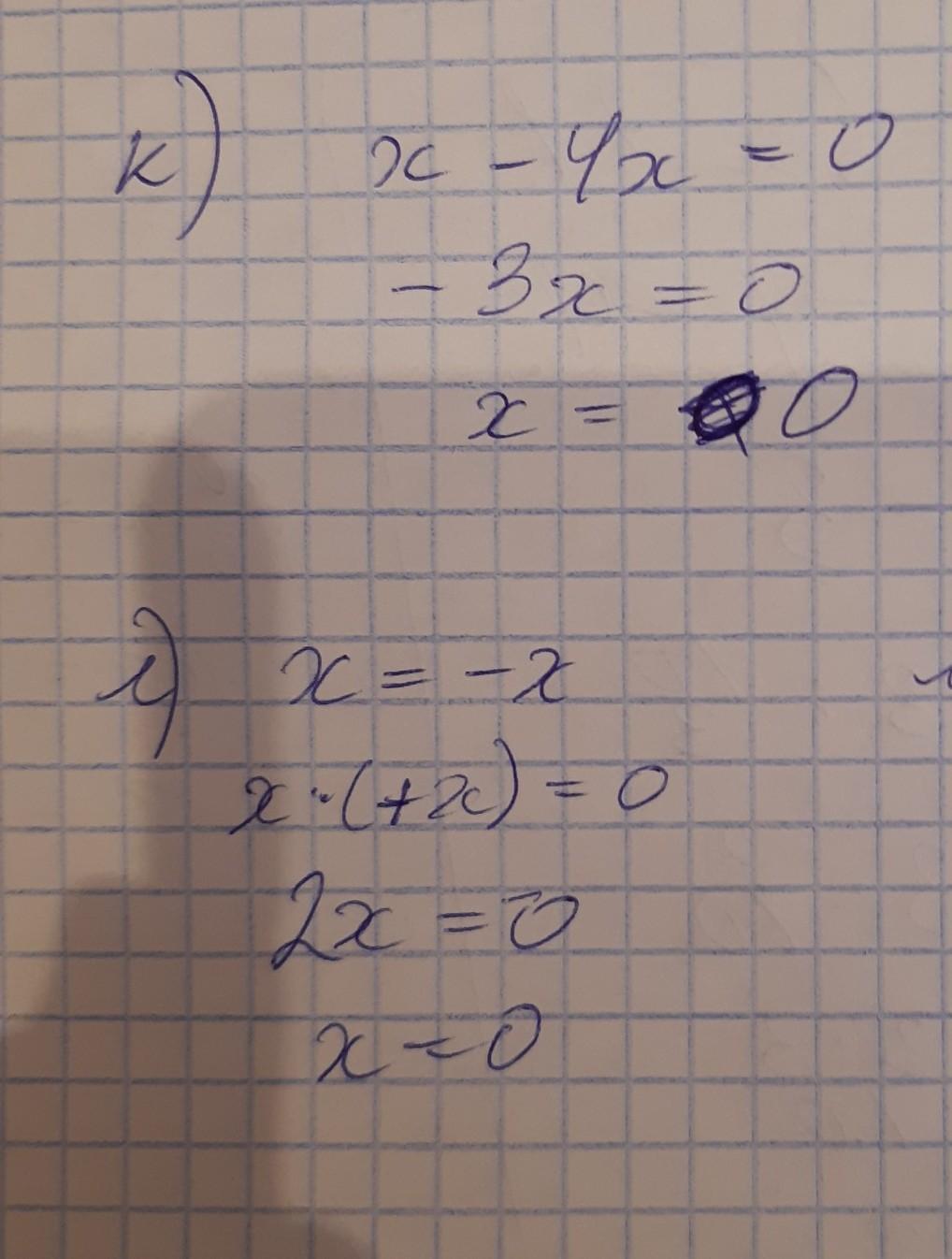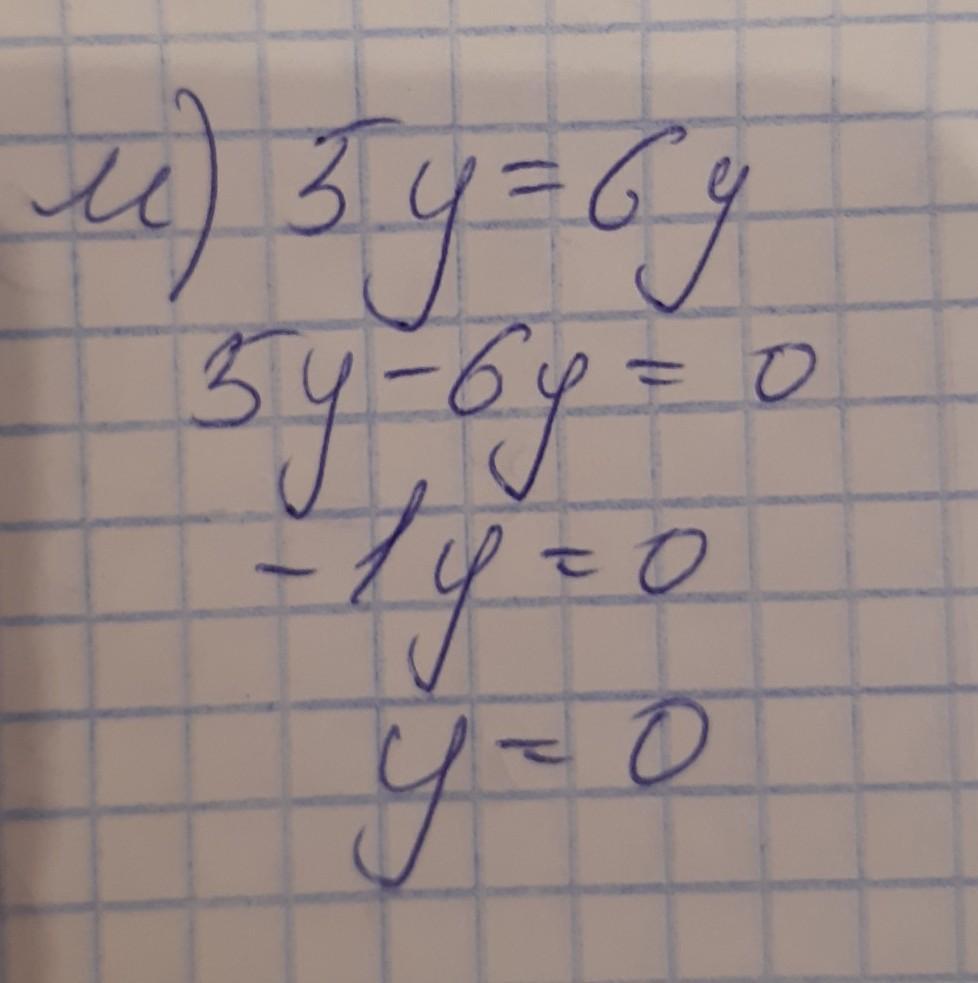 з) 1 1/3x + 4 = 1/3x + 1; и) z - 1/2z = 0; к) x - 4х = 0; л) х = -х; м) 5y = 6у.