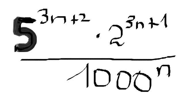 frac{5^{3n+2}*2^{3n+1}}{1000^{n}}=frac{5^2*5^{3n}*2*2^{3n}}{10^{3n}}=frac{50*(5*2)^{3n}}{10^{3n}}=frac{50*10^{3n}}{10^{3n}}=50