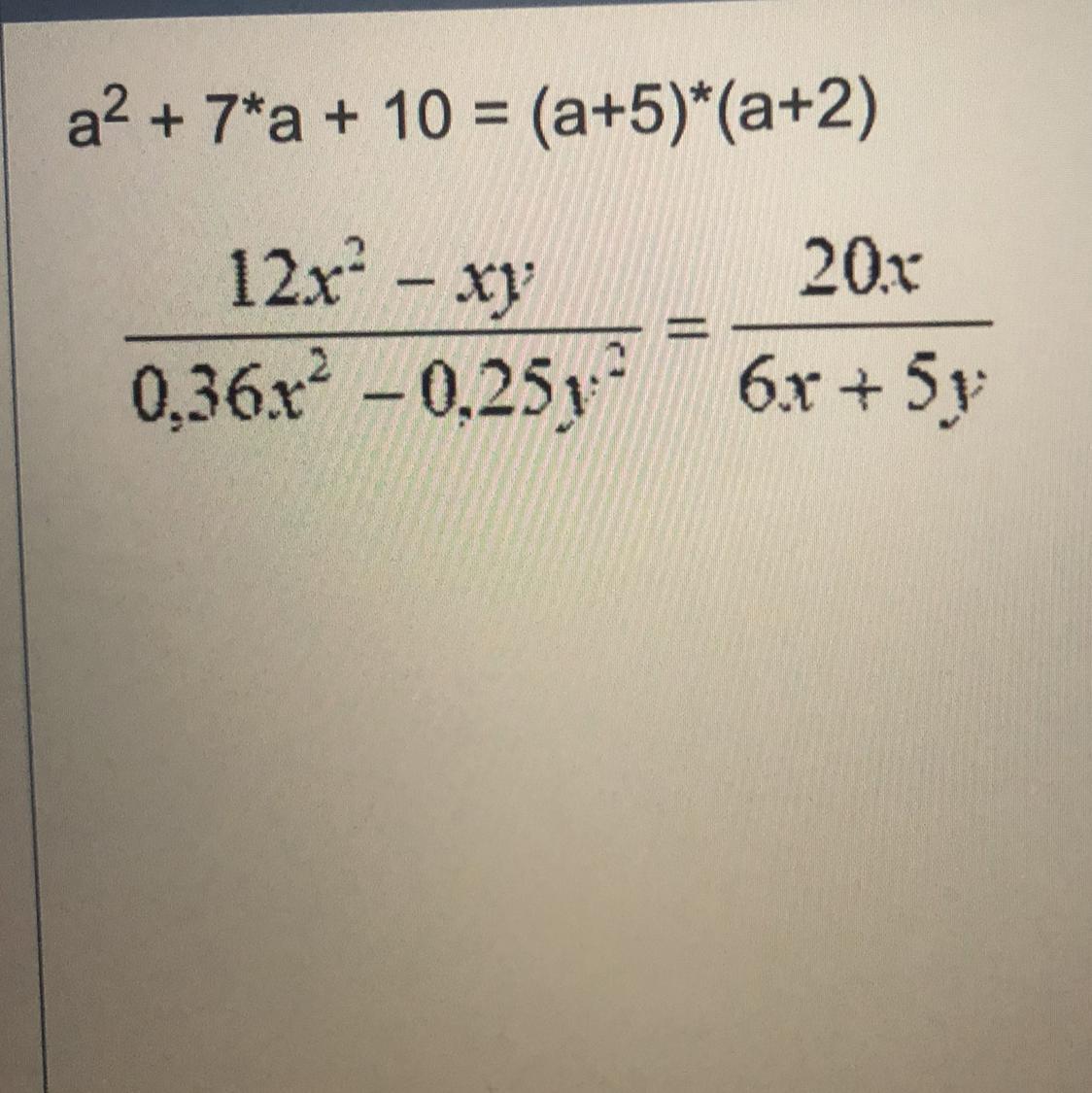 (12x²-xy)/(0,36x²-0,25y²)=20x/(6x+5y)