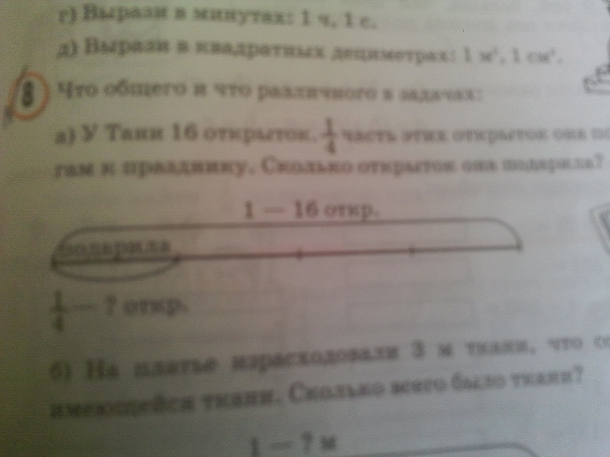 у тани 16 открыток. одна четвёртая часть этих открыток она подарила подругам к празднику. сколько открыток она подарила.