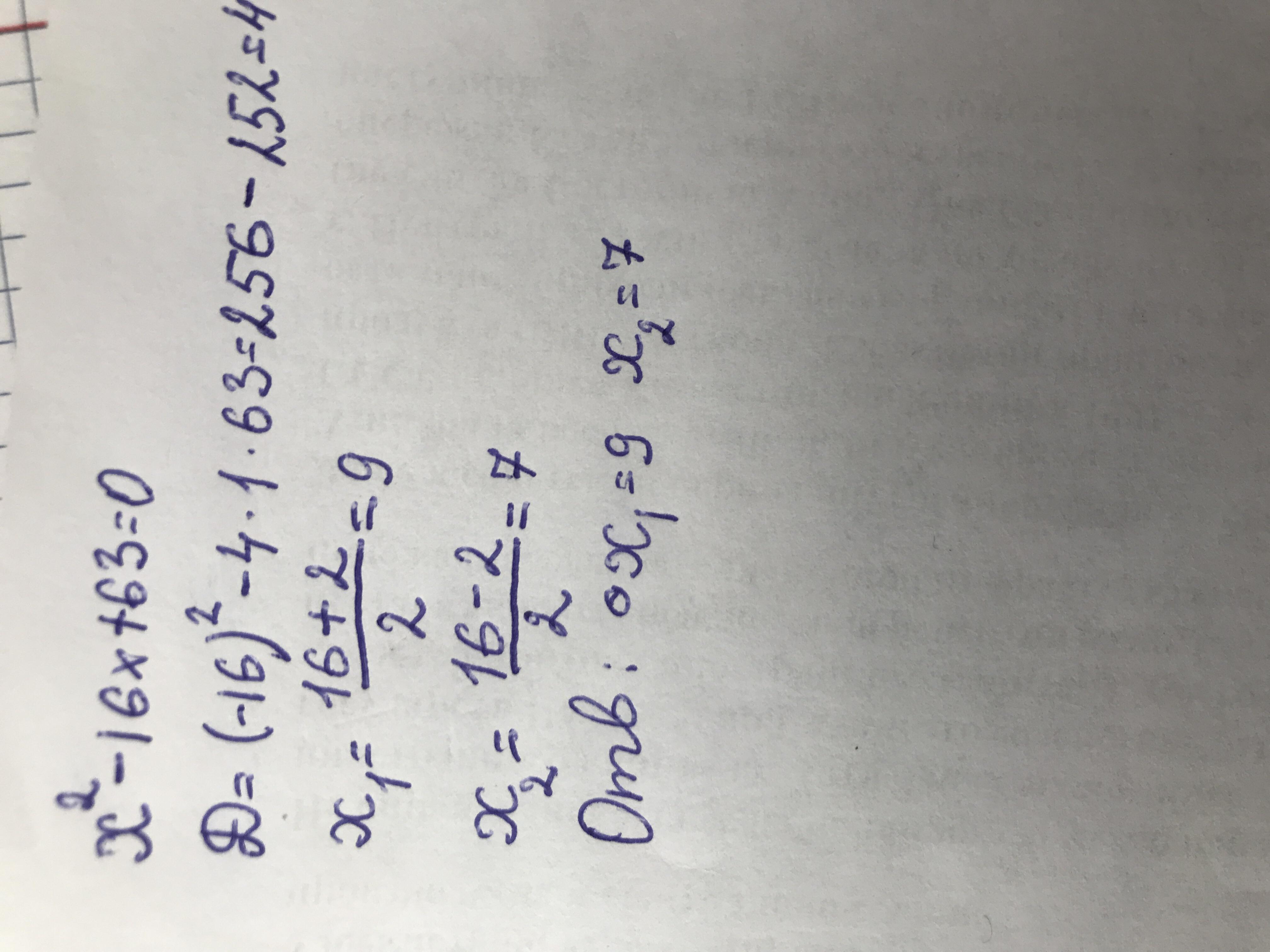 Ответ: X1=9 X2=7