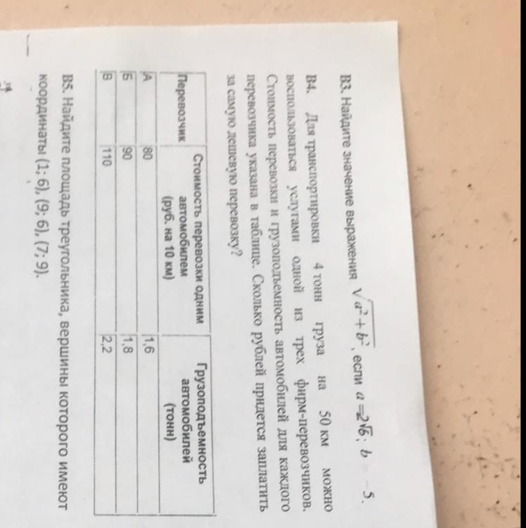 2) Если выбрать перевозчик В то нужно на 4 т. заказать 3 машины грузоподъемностью 1,8 т. т.е 3*1,8=5,4 т. за каждые 10 км. нужно заплатить 90 руб. т.е. за 50 км нужно заплатить 90*5=450 руб.- за одну машину, а т.к. у нас 3 машины, то 450*3=1350 руб нужно заплатить перевозчику В за перевозку 4 т. на 50 км.