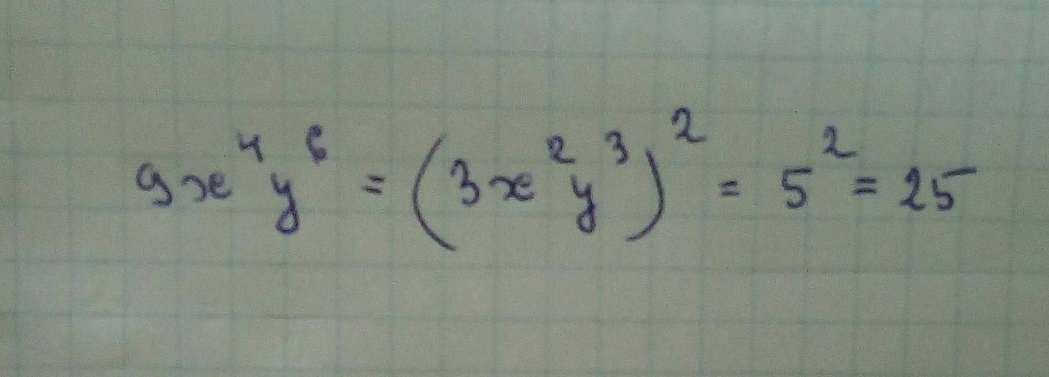 9х^4у^6=(3х^2у3)^2=5^2=25