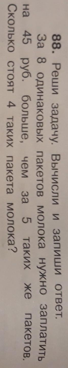 45 : 3 = 15 (руб.) - стоимость одного пакета молока.