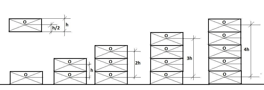 Из чертежа видно, что центр тяжести камня находится на расстоянии h/2 от основания камня.