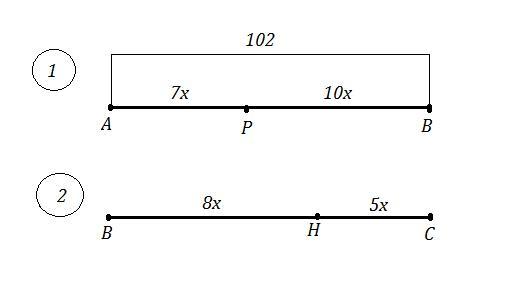 1)Точка Р лежит на отрезке АВ так,что АР : РВ= 0,7.Найдите длину отрезка АР,если АВ=102 м .