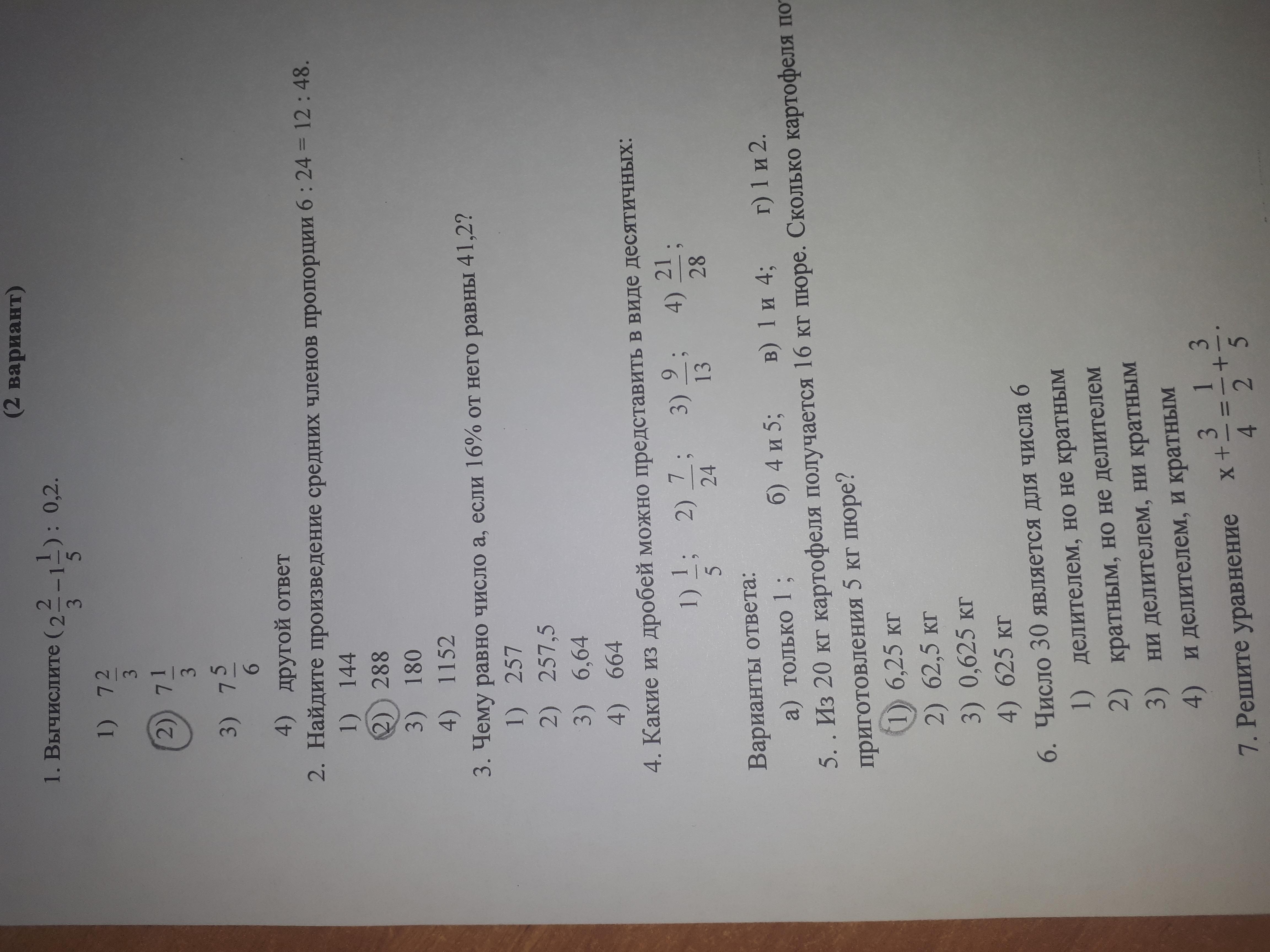 1-ответ 2, 2-ответ 2,3-ответ 3,4-ответ в, 5-ответ 1, 6-ответ-2, 7- ответ 7/20