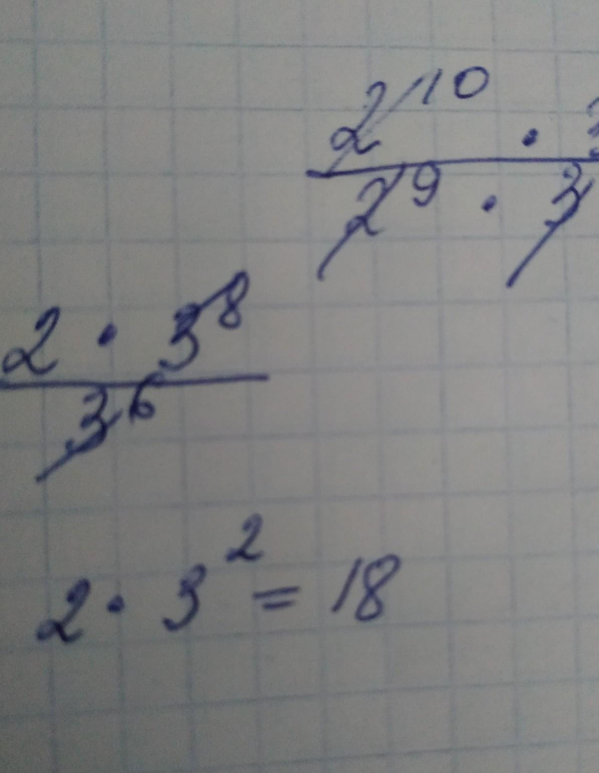 Пошаговое объяснение:((2*2*2*2*2*2*2*2*2*2)*(3*3*3*3*3*3*3*3))/((2*2*2*2*2*2*2*2*2)*(3*3*3*3*3*3))= сокращаем лишние 2 и 3 и получаем 2*9=18
