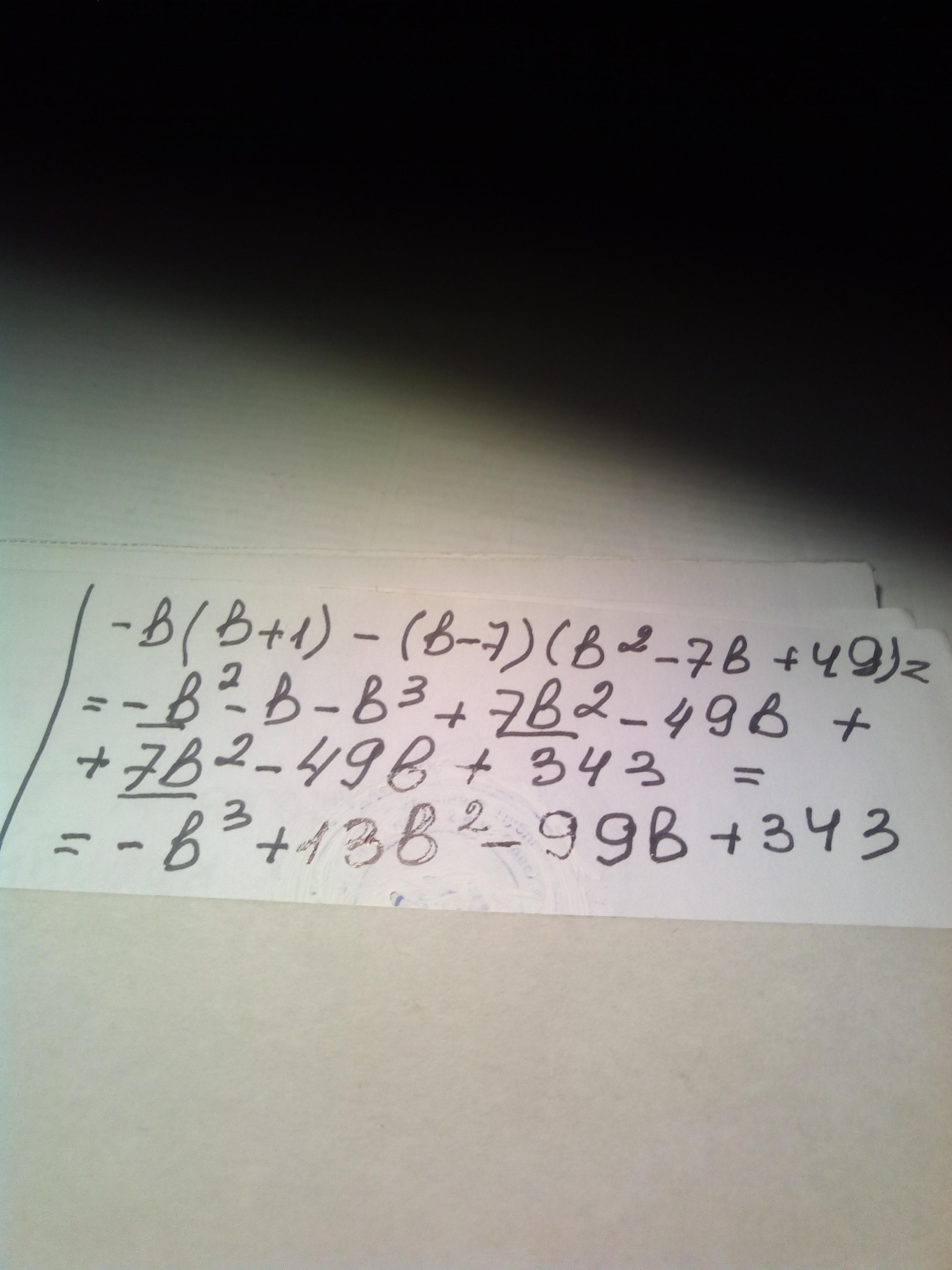 -в(в+1)-(в-7)*(в²-7в+49)=-в²-в-(в³-7в²+49в-7в²+49в-343)=-в²-в-(в³-14в²+98в-343)=-в²-в-в³+14в²-98в+343=-в³+13в²-99в+343
