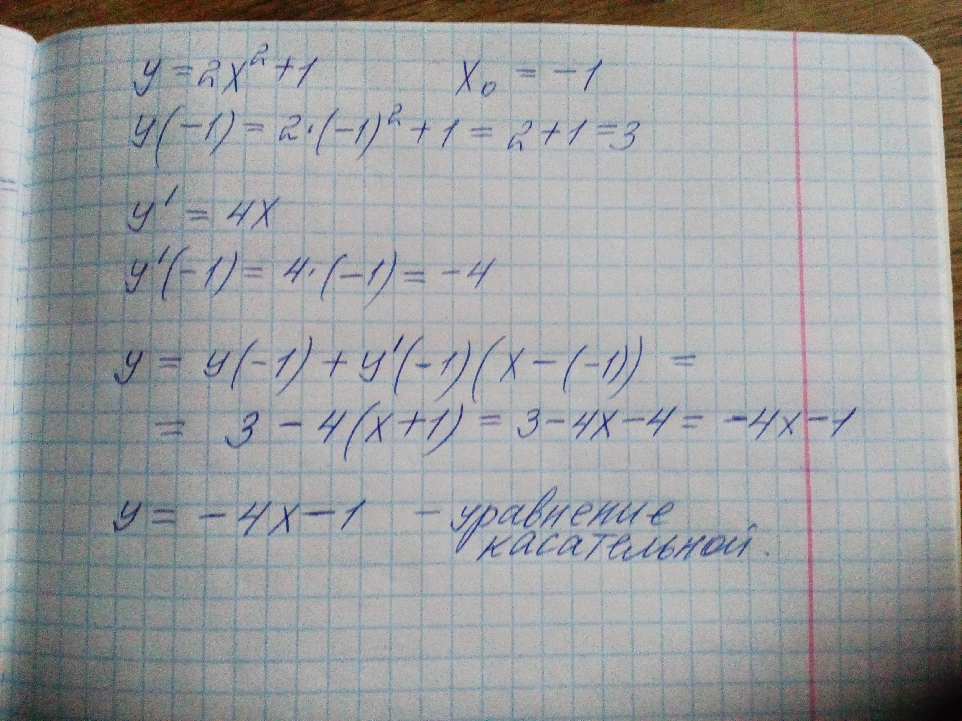 Напишите уравнение касательной к графику функции у = 2х^2+ 1 в его