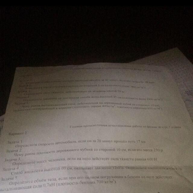 2. pl = m / V = 0, 25 кг / 0, 001 м^3 = 250 кг/м^3