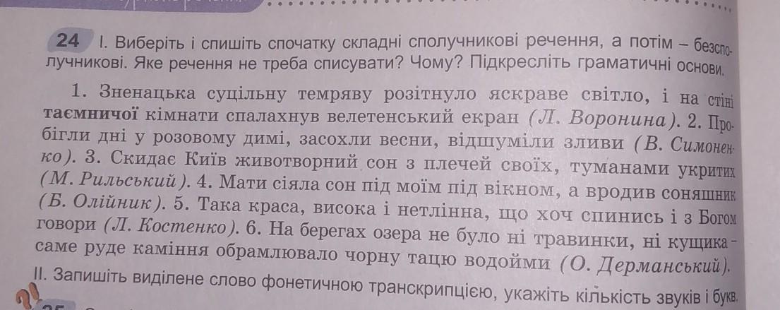 виберіть і спишіть сплчатку складні сполучникові речення,а потім безсполучниуові.Яке речення не треба списувати?Чому?Підкресліть граматияні основи