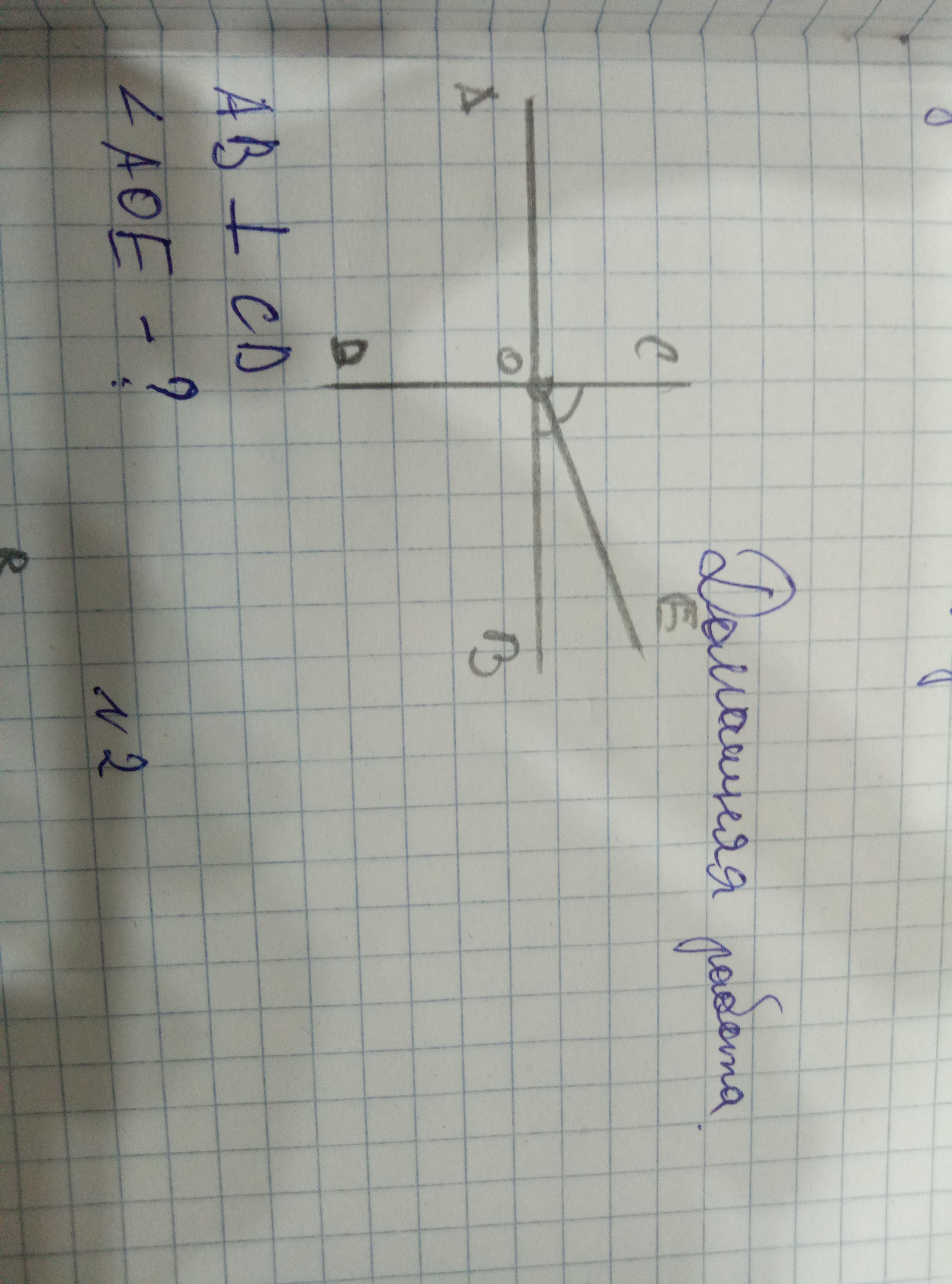 Если АВ перпендикулярно СD , то угол СОВ = СОА = ВОD АОD = 90 градусов. Поскольку СОЕ = ВОЕ , значит СОЕ = 90 : 2 = 45 . Угол АОЕ = AOC + COE = 90 + 45 = 135 градусов.