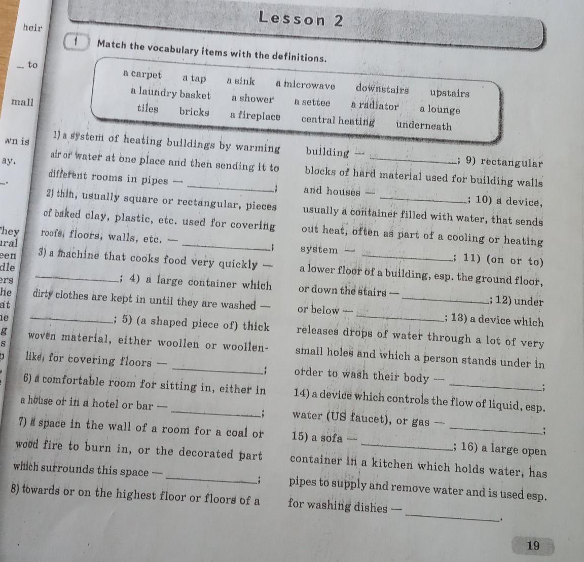 11) (on or to) a lower floor of a building, esp. the ground floor, or down the stairs -- downstairs