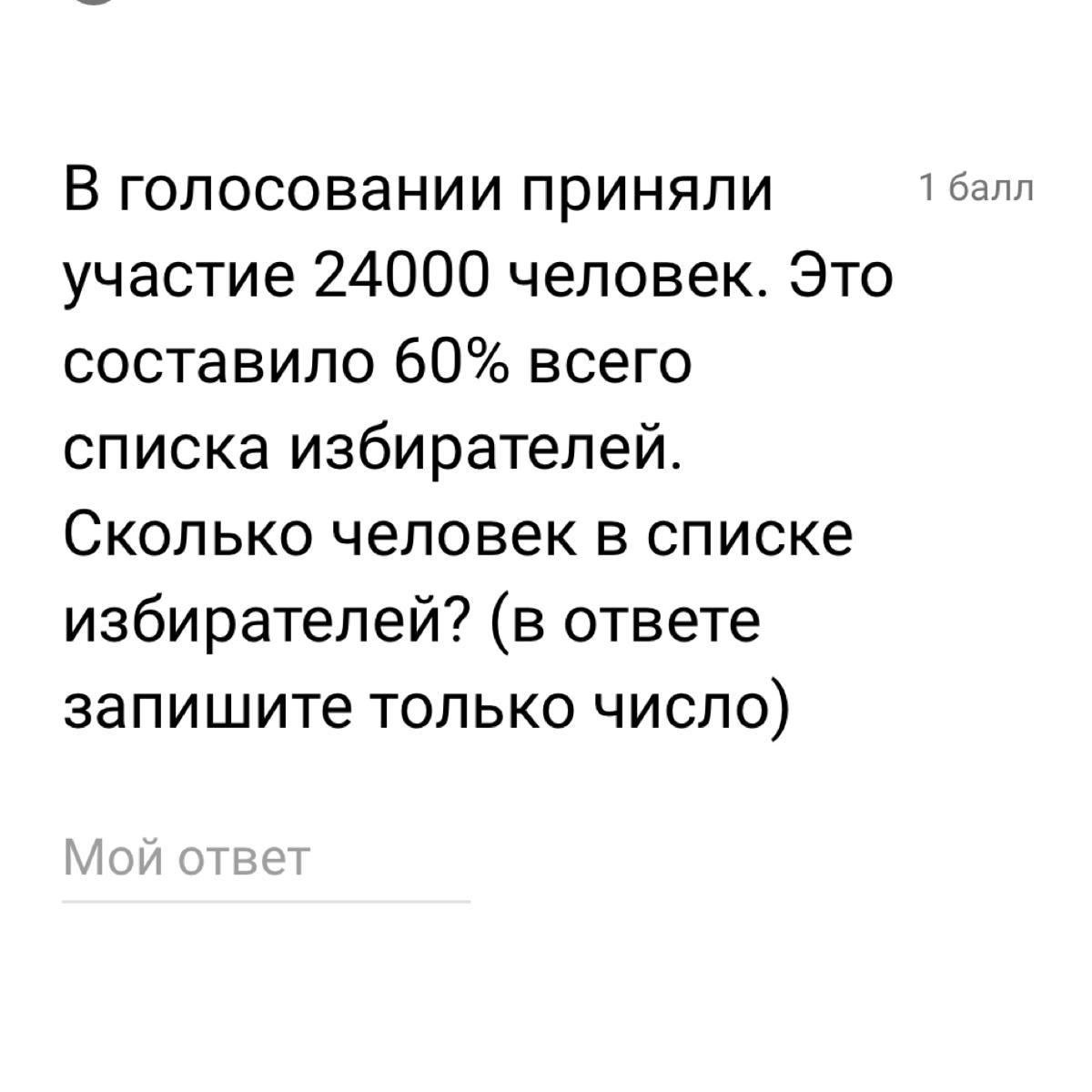 1)24000:60*100=40000 (избирателей всего)