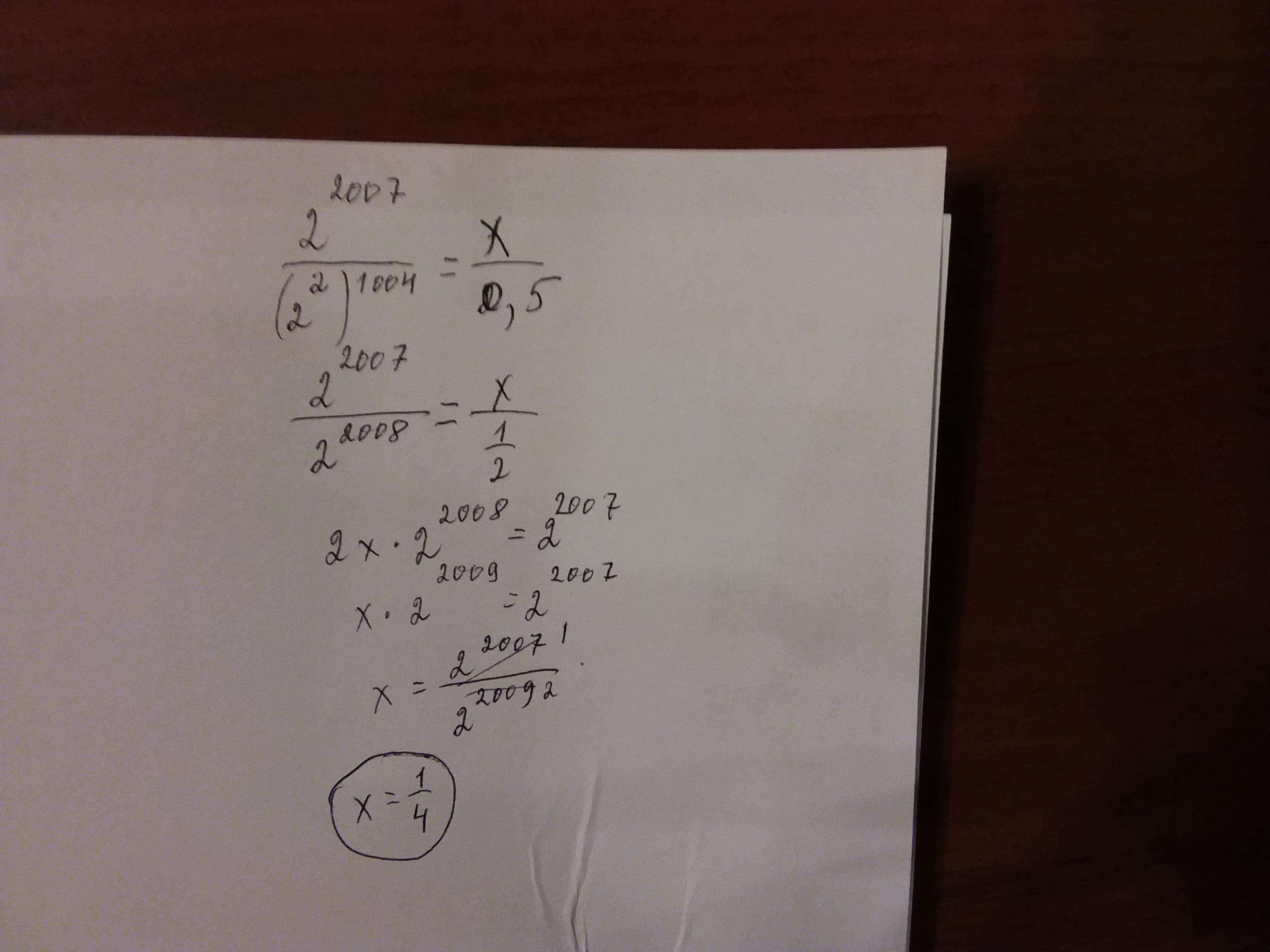 2²⁰⁰⁷/4¹⁰⁰⁴=х/0,5