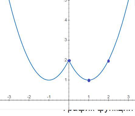 2) строим график для x≥0 по трем точкам (1;1) - вершина; (0;2) ; (2;2)