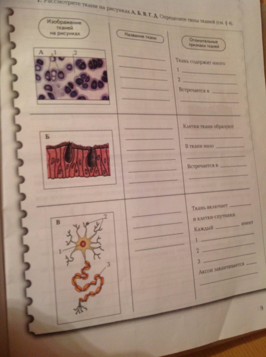 Изображение тканей на рисунках | Название ткани | Отличительные признаки тканей: