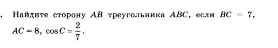 АВ= ✓(8^2+7^2-2*8*7*2/7)=9