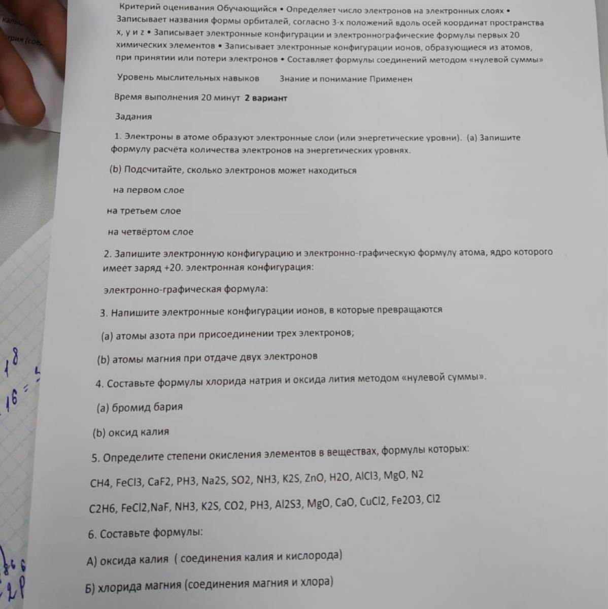 2) заряд +20 у Ca, 1s^2, 2s^2, 2p^6, 3s^2, 3p^6, 4s^2