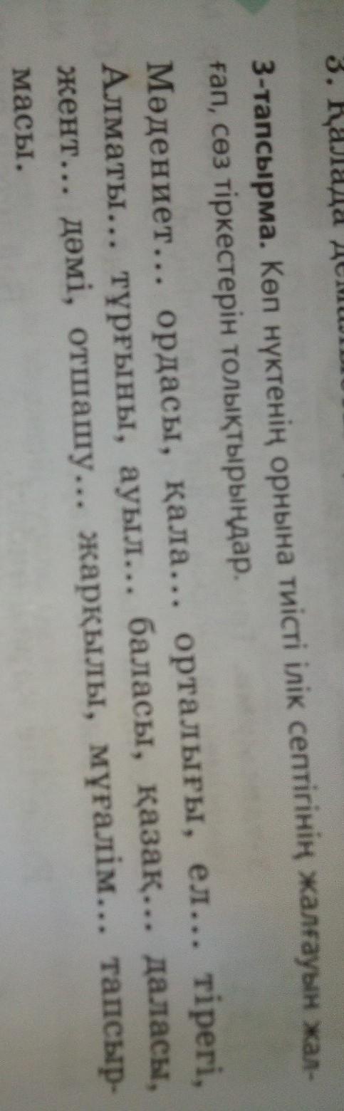 Мәдениеттің ордасы , қаланың орталығы, елдің тірегі, Алматының тұрғыны, ауылдың баласы, қазақтың даласы, женттің дәмі, отшашудың жарқылы, мұғалімнің тапсырмасы .