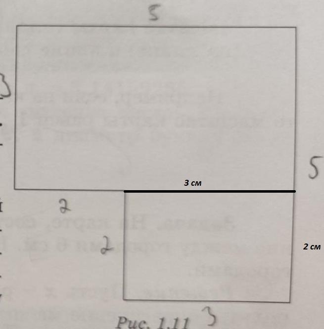 1 часть со сторонами 5 см и 3 см, переведем их в реальные размеры