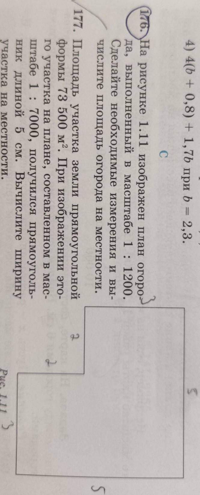 176.На рисунке 1.11 изображены два выполнены в масштабе 1/1200. сделайте необходимые измерения и Вычислите площадь огорода на местности.