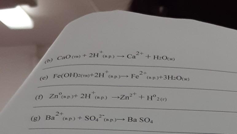 Составьте проведённому сокрашенному уравнению полное молекулярное и ионное уравнение (b)CaO(тв.) +2H+(в.р.) ->Ca2+ +H2O(ж)