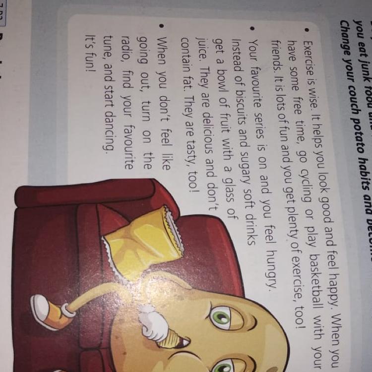 2.Твой любимый сериал идет по телевизору и ты чувствуешь себя голодным. Вместо печенья и сладких безалкогольных напитков, возьми миску фруктов и стакан сока. Они вкусные и не содержат жира. Они очень вкусные!