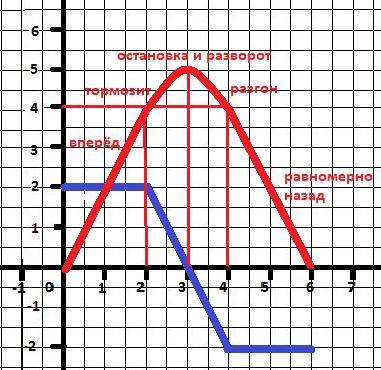 2) S3(t) = V3*t = (-2)*2 = - 4 - третий участок - назад.