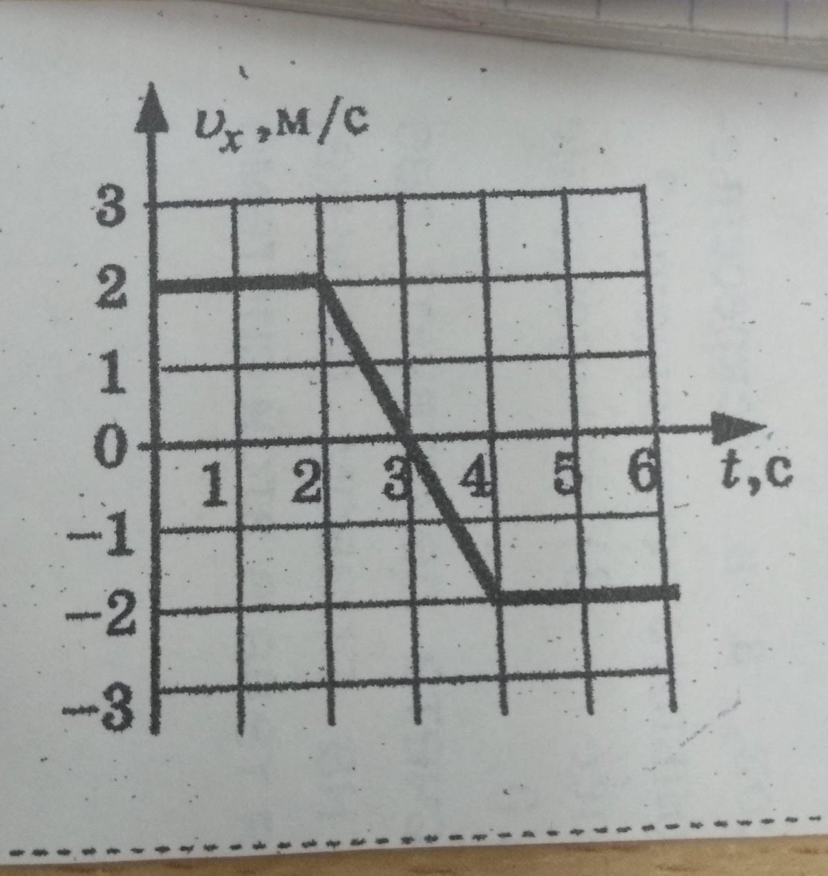 на графике изображена зависимость проекции скорости тела, движущегося вдоль оси ОХ, от времени. Определите перемещение тела к моменту времени т=6
