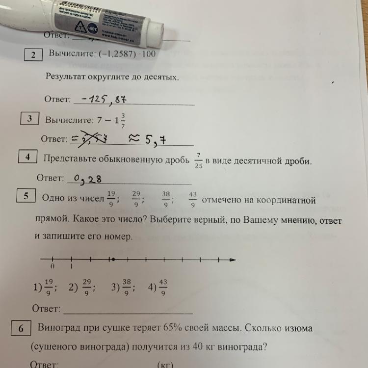 1деление -это 1 целая.Отмеченной точке соответствует координата больше 3 целых.Из данных дробей только при делении 29 на 9 получается число 3 с остатком.Значит верный ответ 2)