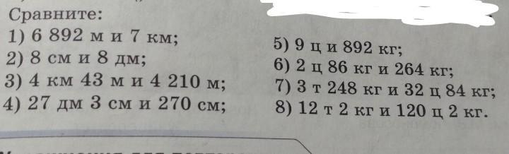 1) 7км 2) 8дм 3) 4.210м 4) 27дм и 3см 5) 9ц 6) 2ц 86кг 7) 3т 248кг 8) 12т и2кг