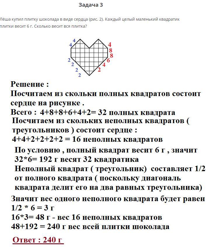 Вопрос : Лёша купил плитку шоколада в виде сердца каждый целый маленький квадратик плитки весит 6г. Сколько весит вся питка помогите пожалуйста.