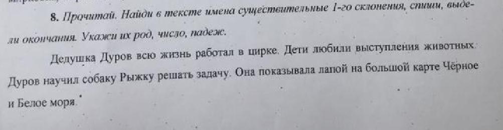Прочитай найди в тексте имена существительные 1 го склонения спиши выдели окончания укажи их род число падеж