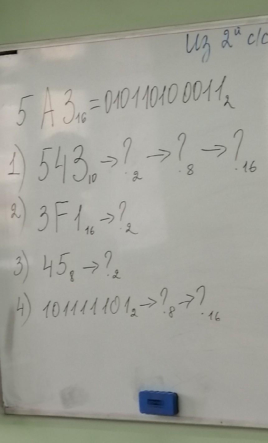 1. 543 = 1000011111 = 1037 = 21F