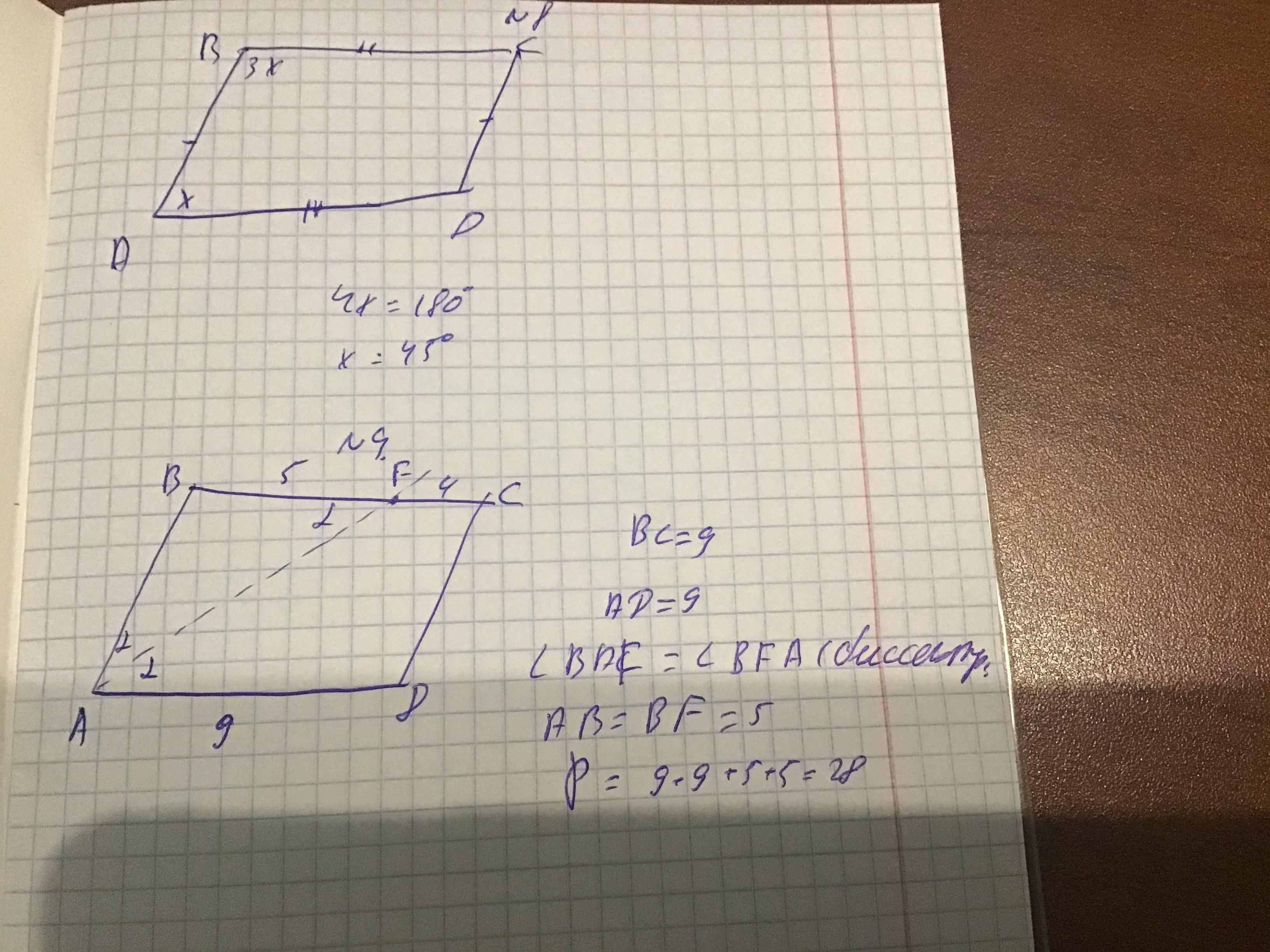 В первом задании отмечаем углы равные 3х и х. Составляем уравнение 180=4х. Отсюда х = 45