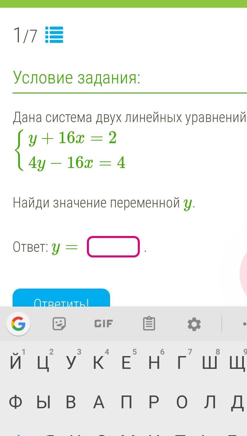 получаем 2-y это значение (относительно 16x, поэтому мы его заменяем во второй части системы) подставляем вместо 16x другой системы, после решаем уравнение относительно y и получаем ответ