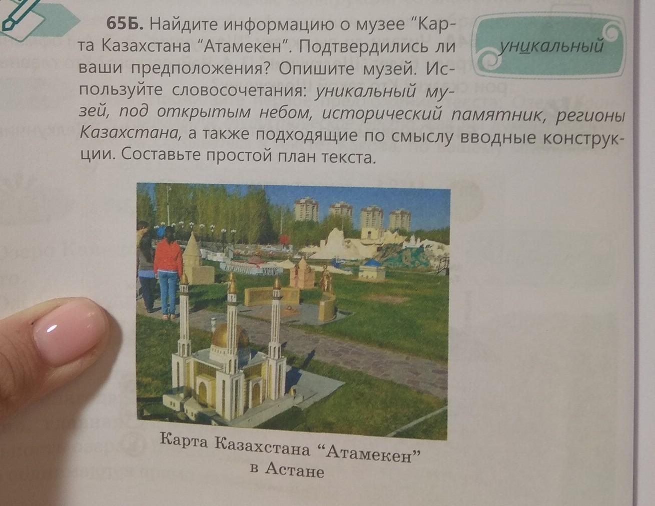 Стилизованные горы, возвышенности, степи, леса, озера, символически обозначенные крупнейшие города составляют своеобразный ансамбль этого центра культуры. Интересной «Атамекена» является декоративно оформленная модель Каспийского моря. Путешествие по дорожкам карты, которые соответствуют главным автомобильным и железным дорогам страны, позволяет изучить наиболее значительные достопримечательности Казахстана.