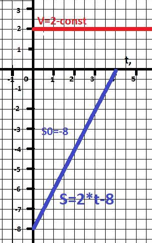 Опишите движение тела вдоль оси ОХ, если зависимость координаты от времени имеет вид: х = -8 + 2t. Определите начальную координату тела хо и проекцию скорости Vх. Постойте графики зависимости х(t) и Vх(t).