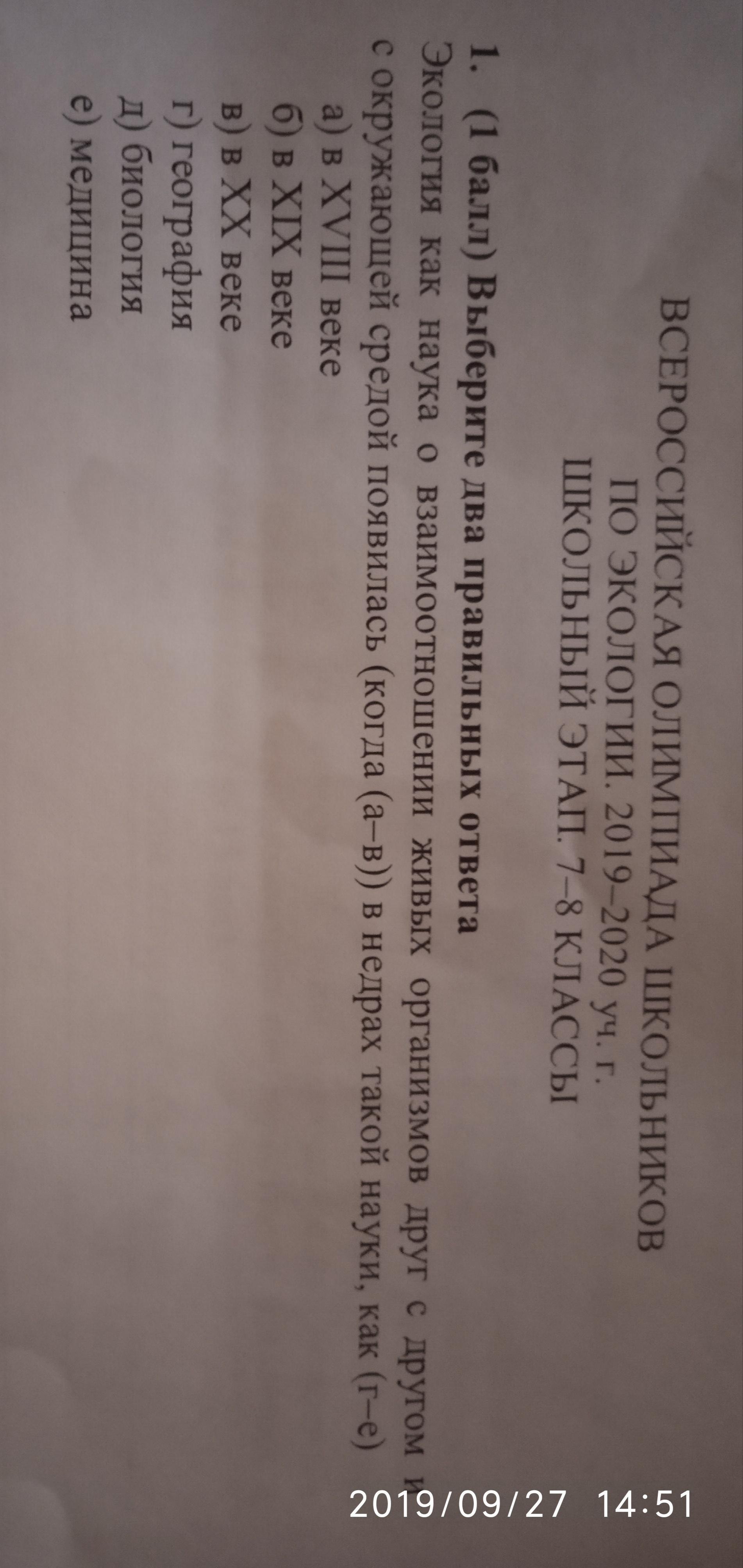 Экология как наука о взаимоотношении живых организмов друг с другом и с окружающей средой появилась (когда(а-в)) в недрах такой науки, как (г-е)