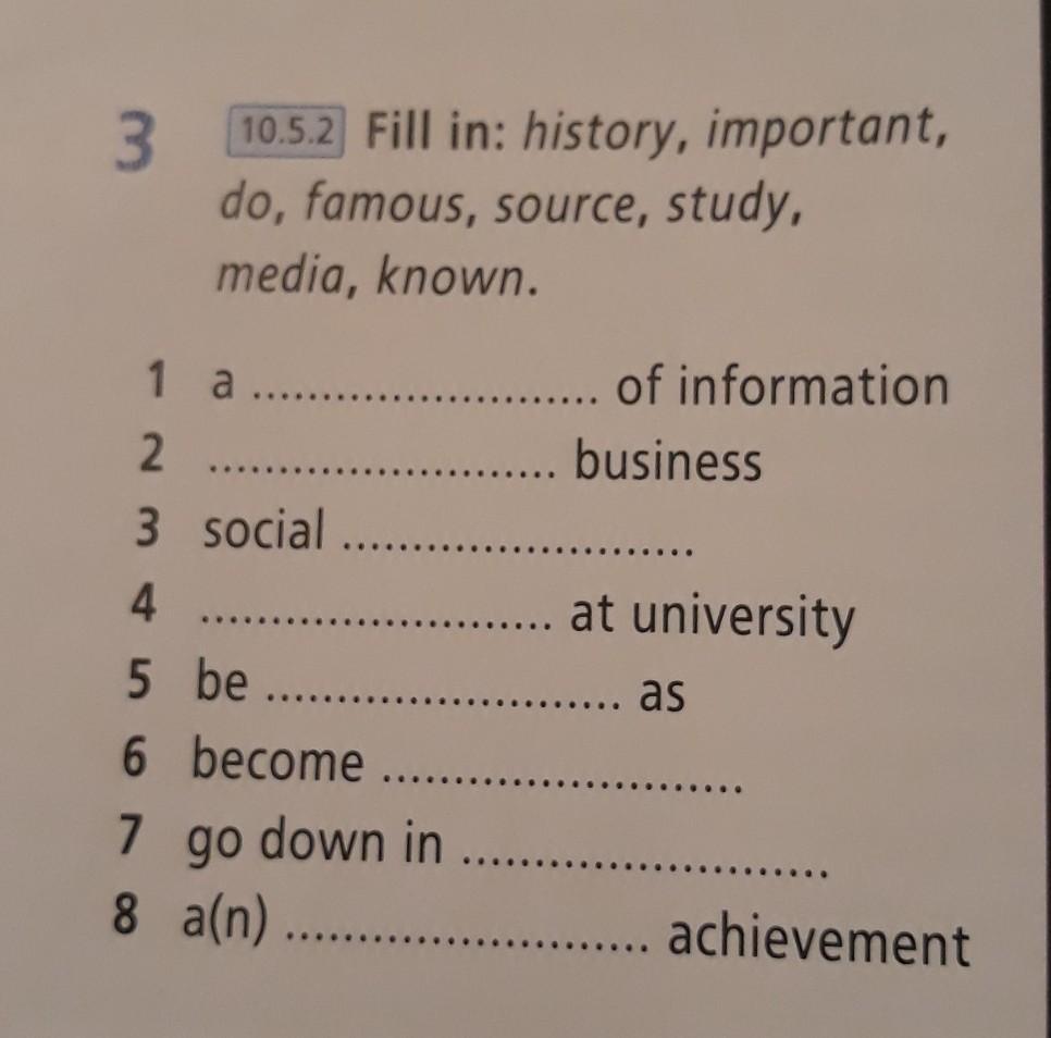 10. 5. 2) Fill in: history, important, do, famous, source, study, media, known.