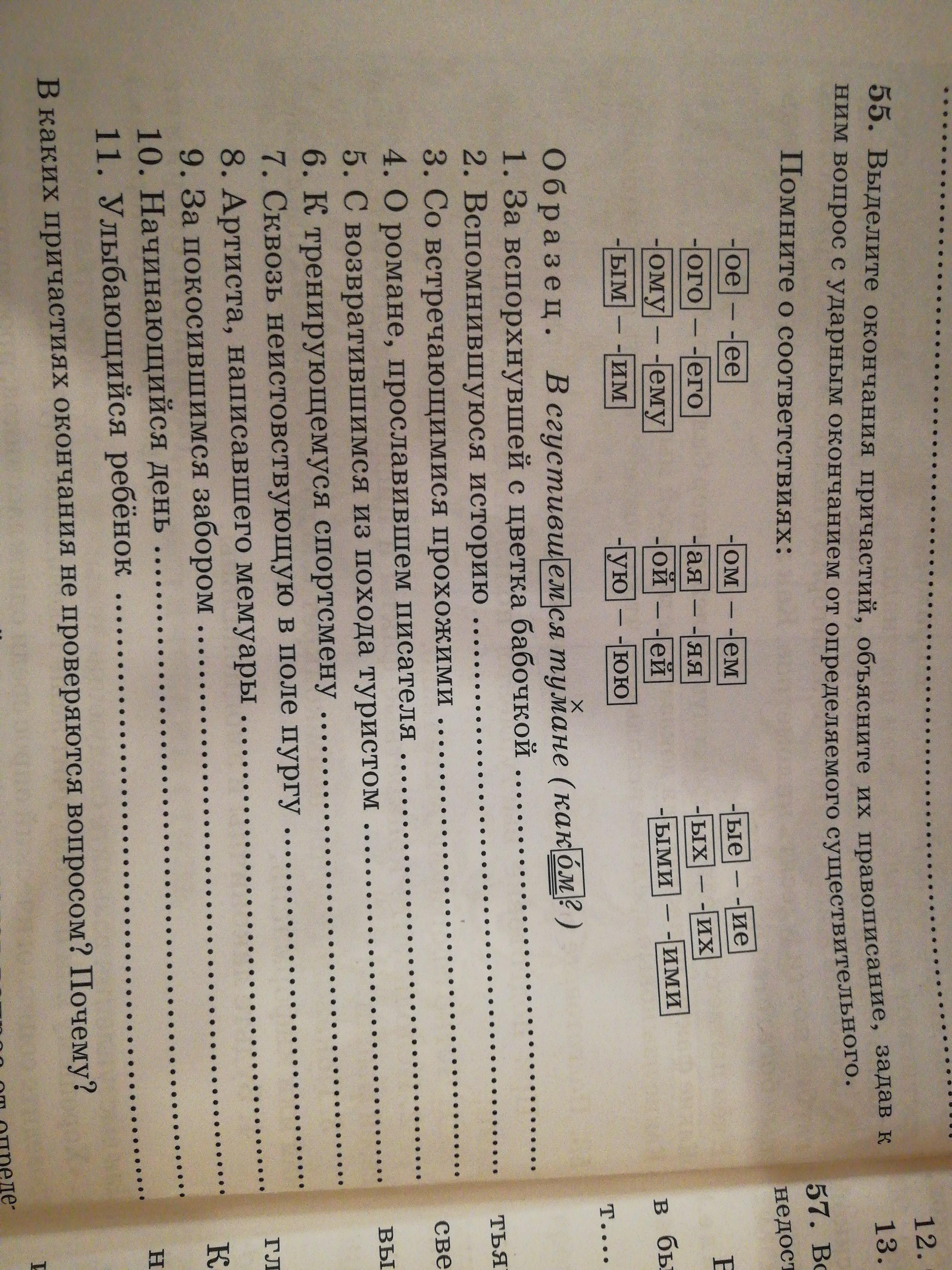 В предложениях под 10 и 11 номерами окончания причастий не проверяются, т.к они состоят из И.п или В.п в муж.роде.