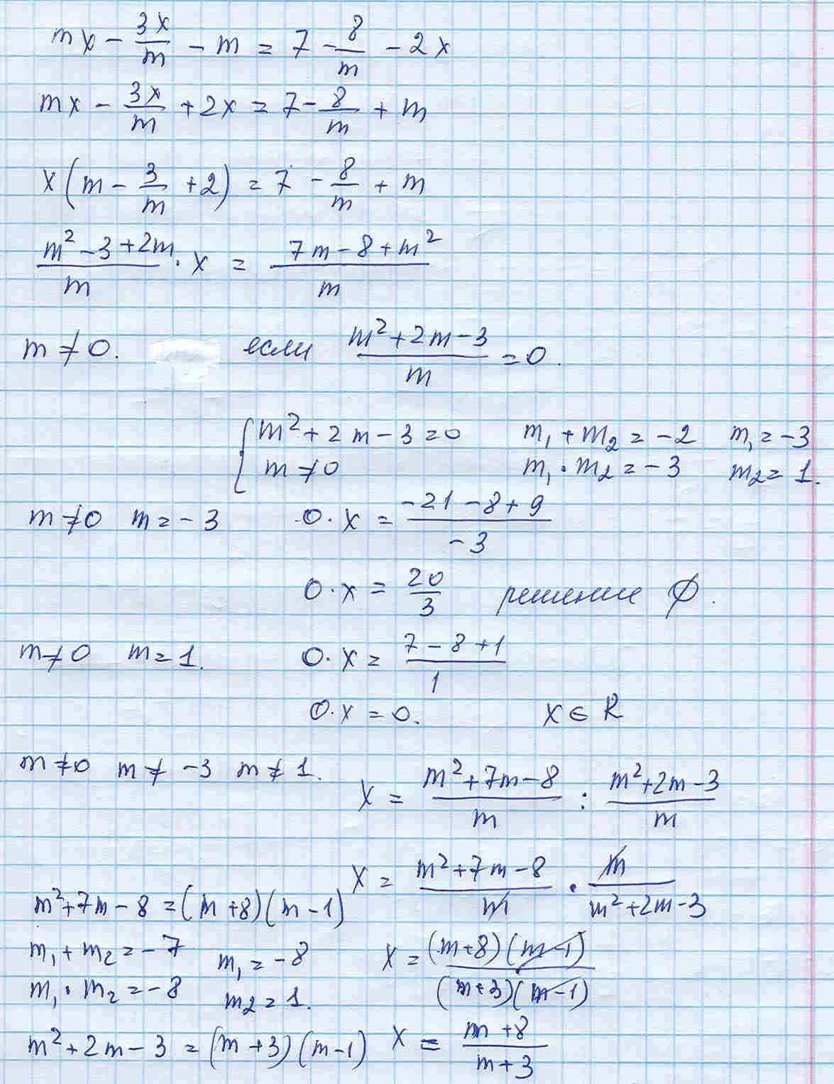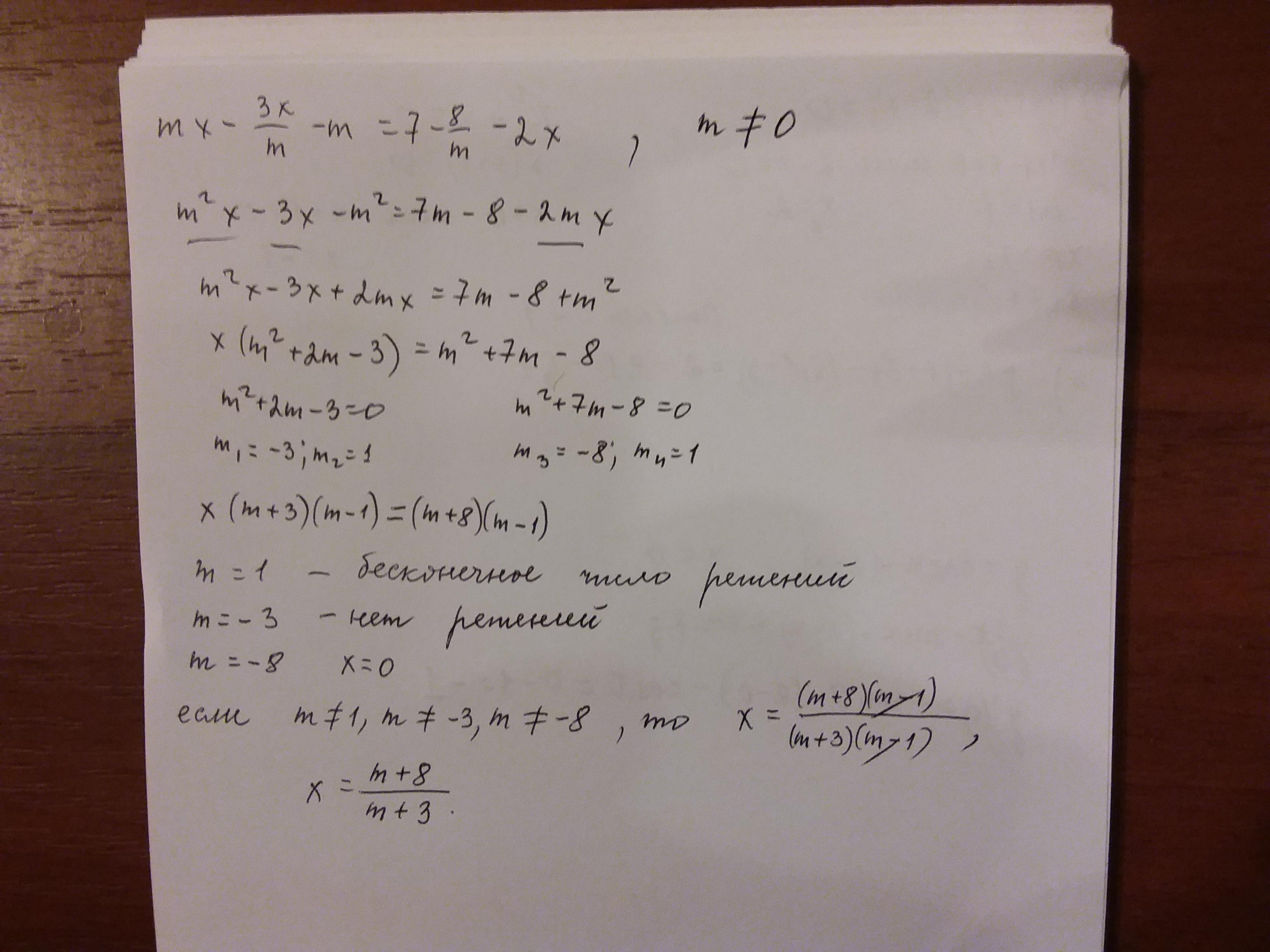 если m≠0 m≠-3 m≠1 x=(x+8)/(x+3)