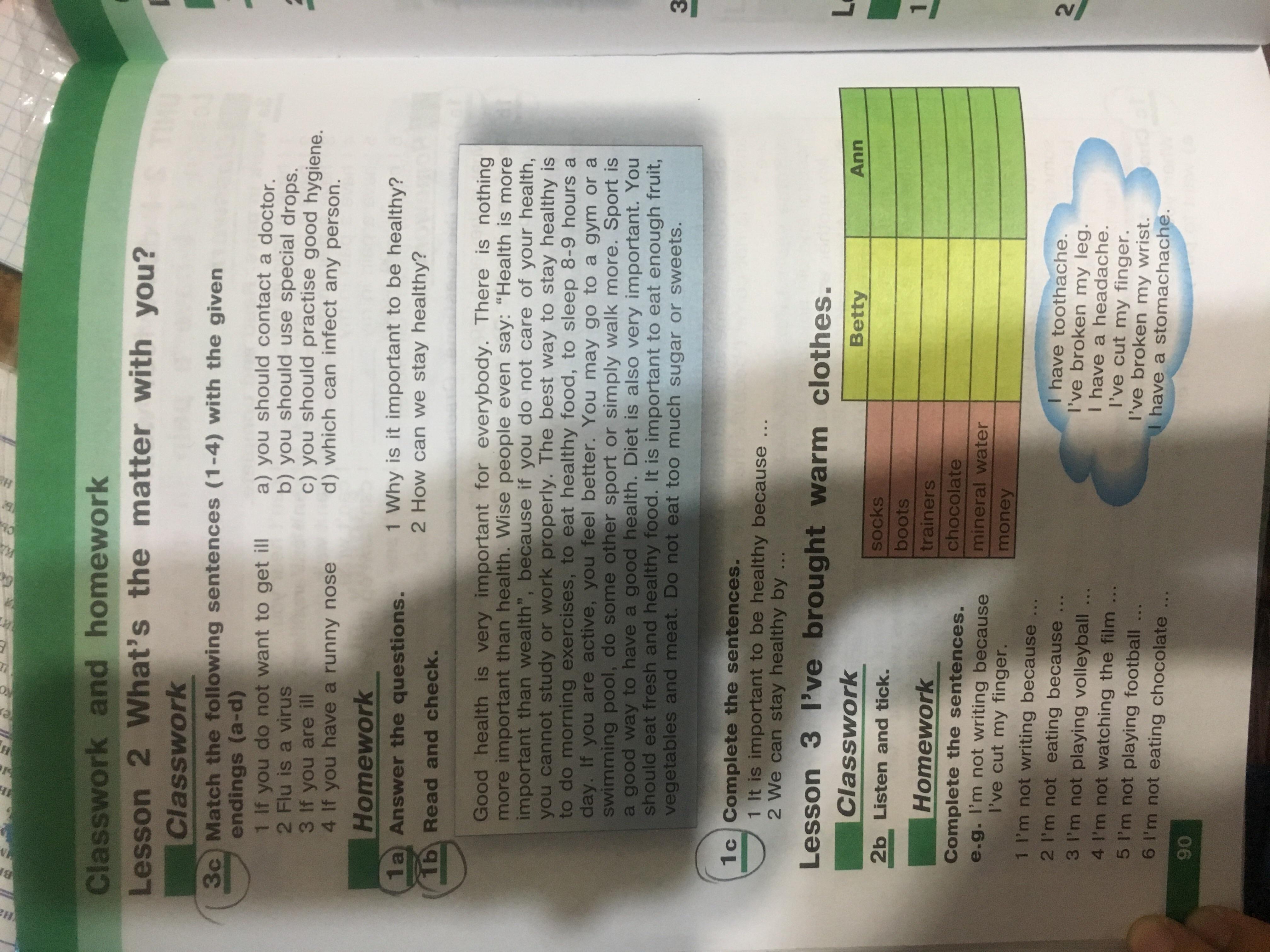 #1c. 1) It is important to be healthy because if you do not care of your health, you cannot study or work properly.