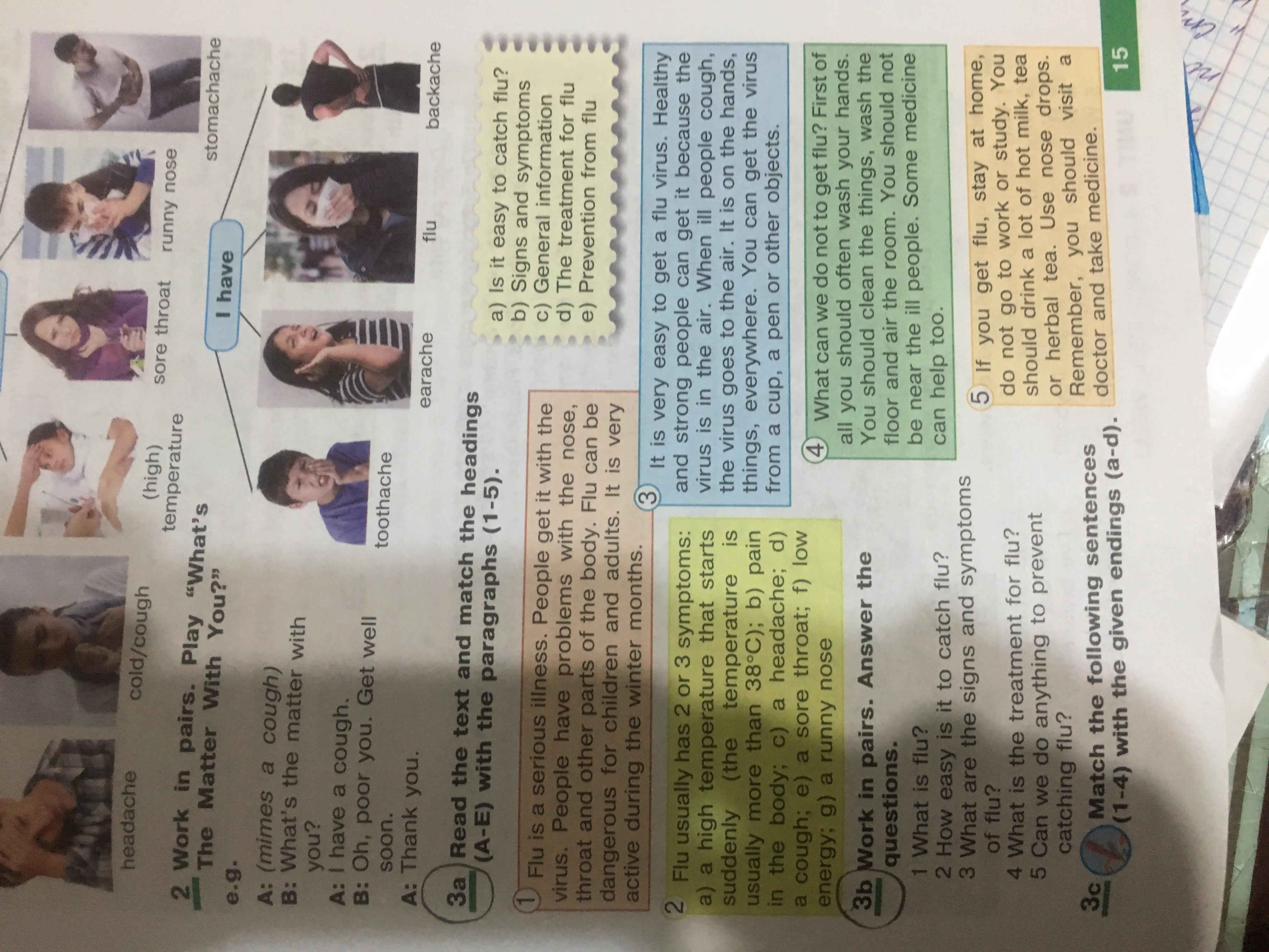 3) Signs and symptoms: a high temperature, pain in the body, a headache, a cough, a sore throat, low energy and a runny nose.